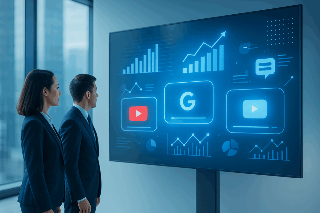 Uma assinatura mensal que mantém sua empresa visível no Google, YouTube e redes sociais, com produção contínua de vídeos inéditos e otimizados para SEO.